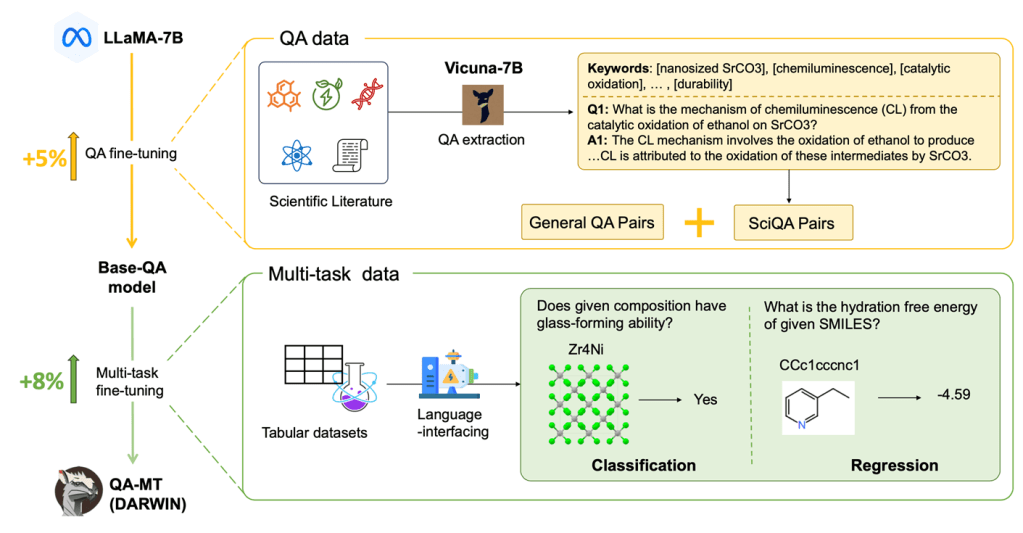 We have developed AI systems that automate the extraction of structured material-property relationships directly from papers, enabling rapid construction of expert datasets. Using large language models (LLMs), we’ve also demonstrated how to perform scientific question answering, generate hypotheses, and assist in material design and optimization.