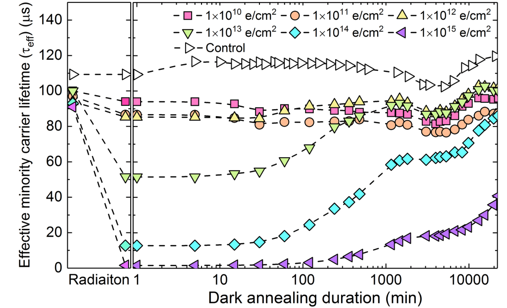 [1] Khan et al. “Degradation and regeneration of radiation-induced defects in silicon: A study of vacancy-hydrogen interactions” doi.org/10.1016/j.solmat.2019.109990